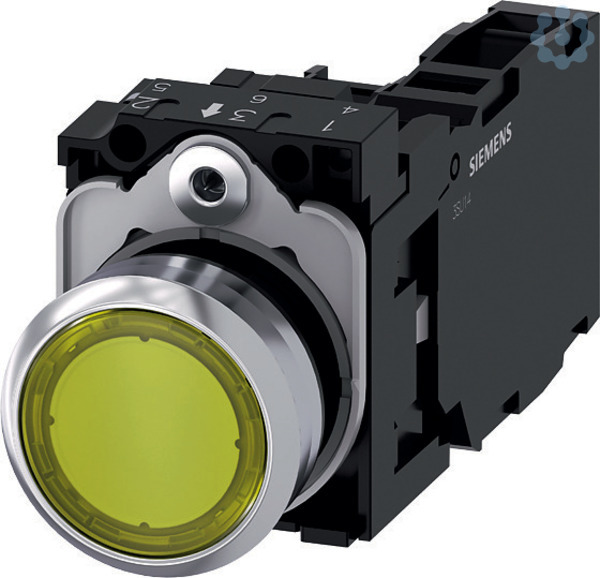 Leuchtdrucktaster, 22 mm, rund, Metall, hochglanz, gelb, Druckknopf, flach, tastend, mit Halter, 1S+1Ö, LED-Modul mit integrierter LED AC 110 V, Schraubanschluss Leuchtdrucktaster SIRIUS ACT zur Schaltung und Steuerung elektrischer Verbraucher.Unter dem Markennamen SIRIUS ACT bietet Siemens ein einzigartiges Portfolio an Befehls- und Meldegeräten mit weltweiten Produkt-Zulassungen in drei modernen Designreihen aus robustem Echtmetall und hochwertigem Kunststoff.Das innovative Aufschnappkonzept vereinfacht die Montage so weit, dass dafür nur eine Hand und kein Spezialwerkzeug erforderlich ist. Als Montagebohrungen genügen nutfreie Löcher, da bereits ein 100%igerVerdrehschutz integriert ist.Dank der durchgängig hohen Schutzart sind die robusten Geräte industrietauglich und für den Außeneinsatz geeignet. Sogar die Reinigung mit Hochdruckstrahl ist möglich. Weder Staub, Öle noch aggressive Laugen können den zuverlässigen Betrieb stören.Neben der Standardverdrahtung können die meisten Geräte auch über PROFINET, AS-Interface oder IO-Link an die Steuerung angebunden werden. Damit reduzieren Sie Ihren Verdrahtungsaufwand, minimieren Fehlerquellen und gewinnen mehr Flexibilität.Komfortabel unterstützt der grafische Online-Konfigurator bei Auswahl und Bestellung von Einzelgeräten, Gehäusen und Beschriftungen. Umfangreiche Dokumentation (z.B. Handbuch, 3D-Daten, Anschlussdiagramm) ist verfügbar.Lieferbare Ausführungen: mehrere Farben, beleuchtet/unbeleuchtet, mit/ohne Beschriftung, verrastende/tastende Betätigung, verschiedene Druckknopf- und Frontringhöhen.Hinweis: Komplettgerät, Lieferung inklusive Halter und Module.SIRIUS ACT - Performance in Action beim Befehlen und Melden. Einfach montiert, einfach stark, einfach perfekt.