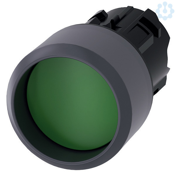 Drucktaster, 22 mm, rund, Kunststoff mit Metallfrontring, grün, Frontring, hoch tastend Drucktaster SIRIUS ACT zur Schaltung und Steuerung elektrischer Verbraucher.Unter dem Markennamen SIRIUS ACT bietet Siemens ein einzigartiges Portfolio an Befehls- und Meldegeräten mit weltweiten Produkt-Zulassungen in vier modernen Designreihen aus robustem Echtmetall und hochwertigem Kunststoff.Das innovative Aufschnappkonzept vereinfacht die Montage so weit, dass dafür nur eine Hand und kein Spezialwerkzeug erforderlich ist. Als Montagebohrungen genügen nutfreie Löcher, da bereits ein 100%iger Verdrehschutz integriert ist.Dank der durchgängig hohen Schutzart sind die robusten Geräte industrietauglich und für den Außeneinsatz geeignet. Sogar die Reinigung mit Hochdruckstrahl ist möglich. Weder Staub, Öle noch aggressive Laugen können den zuverlässigen Betrieb stören.Neben der Standardverdrahtung können die Geräte auch über PROFINET, AS-Interface oder IO-Link an die Steuerung angebunden werden. Damit reduzieren Sie Ihren Verdrahtungsaufwand, minimieren Fehlerquellen und gewinnen mehr Flexibilität.Komfortabel unterstützt der grafische Online-Konfigurator bei Auswahl und Bestellung von Einzelgeräten, Gehäusen und Beschriftungen. Umfangreiche Dokumentation (z.B. Handbuch, 3D-Daten, Anschlussdiagramm) ist verfügbar.Lieferbare Ausführungen: mehrere Farben, beleuchtet/unbeleuchtet, mit/ohne Beschriftung, verrastende/tastende Betätigung, verschiedene Druckknopf- und Frontringhöhen.Hinweis: Einzelgerät, Halter und Module bitte extra bestellen.SIRIUS ACT - Performance in Action beim Befehlen und Melden. Einfach montiert, einfach stark, einfach perfekt.