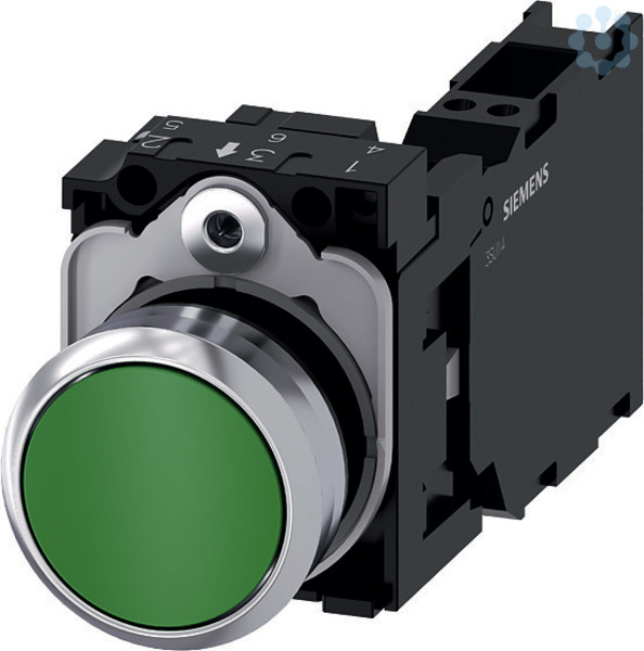 Drucktaster, 22 mm, rund, Metall, hochglanz, grün, Druckknopf, flach, tastend, 1S+1Ö, Federzuganschluss Drucktaster SIRIUS ACT zur Schaltung und Steuerung elektrischer Verbraucher.Unter dem Markennamen SIRIUS ACT bietet Siemens ein einzigartiges Portfolio an Befehls- und Meldegeräten mit weltweiten Produkt-Zulassungen in drei modernen Designreihen aus robustem Echtmetall und hochwertigem Kunststoff.Das innovative Aufschnappkonzept vereinfacht die Montage so weit, dass dafür nur eine Hand und kein Spezialwerkzeug erforderlich ist. Als Montagebohrungen genügen nutfreie Löcher, da bereits ein 100%iger Verdrehschutz integriert ist.Dank der durchgängig hohen Schutzart sind die robusten Geräte industrietauglich und für den Außeneinsatz geeignet. Sogar die Reinigung mit Hochdruckstrahl ist möglich. Weder Staub, Öle noch aggressive Laugen können den zuverlässigen Betrieb stören.Neben der Standardverdrahtung können die meisten Geräte auch über PROFINET, AS-Interface oder IO-Link an die Steuerung angebunden werden. Damit reduzieren Sie Ihren Verdrahtungsaufwand, minimieren Fehlerquellen und gewinnen mehr Flexibilität.Komfortabel unterstützt der grafische Online-Konfigurator bei Auswahl und Bestellung von Einzelgeräten, Gehäusen und Beschriftungen. Umfangreiche Dokumentation (z.B. Handbuch, 3D-Daten, Anschlussdiagramm) ist verfügbar.Lieferbare Ausführungen: mehrere Farben, beleuchtet/unbeleuchtet, mit/ohne Beschriftung, verrastende/tastende Betätigung, verschiedene Druckknopf- und Frontringhöhen.Hinweis: Komplettgerät, Lieferung inklusive Halter und Module.SIRIUS ACT - Performance in Action beim Befehlen und Melden. Einfach montiert, einfach stark, einfach perfekt.