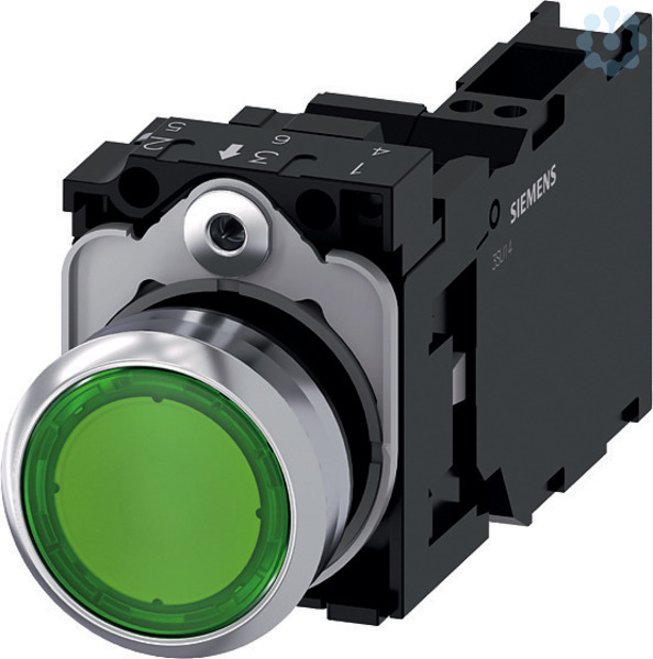 Leuchtdrucktaster, 22 mm, rund, Metall, hochglanz, grün, Druckknopf, flach, tastend, mit Halter, 1S+1Ö, LED-Modul mit integrierter LED AC 110 V, Federzuganschluss Leuchtdrucktaster SIRIUS ACT zur Schaltung und Steuerung elektrischer Verbraucher.Unter dem Markennamen SIRIUS ACT bietet Siemens ein einzigartiges Portfolio an Befehls- und Meldegeräten mit weltweiten Produkt-Zulassungen in drei modernen Designreihen aus robustem Echtmetall und hochwertigem Kunststoff.Das innovative Aufschnappkonzept vereinfacht die Montage so weit, dass dafür nur eine Hand und kein Spezialwerkzeug erforderlich ist. Als Montagebohrungen genügen nutfreie Löcher, da bereits ein 100%igerVerdrehschutz integriert ist.Dank der durchgängig hohen Schutzart sind die robusten Geräte industrietauglich und für den Außeneinsatz geeignet. Sogar die Reinigung mit Hochdruckstrahl ist möglich. Weder Staub, Öle noch aggressive Laugen können den zuverlässigen Betrieb stören.Neben der Standardverdrahtung können die meisten Geräte auch über PROFINET, AS-Interface oder IO-Link an die Steuerung angebunden werden. Damit reduzieren Sie Ihren Verdrahtungsaufwand, minimieren Fehlerquellen und gewinnen mehr Flexibilität.Komfortabel unterstützt der grafische Online-Konfigurator bei Auswahl und Bestellung von Einzelgeräten, Gehäusen und Beschriftungen. Umfangreiche Dokumentation (z.B. Handbuch, 3D-Daten, Anschlussdiagramm) ist verfügbar.Lieferbare Ausführungen: mehrere Farben, beleuchtet/unbeleuchtet, mit/ohne Beschriftung, verrastende/tastende Betätigung, verschiedene Druckknopf- und Frontringhöhen.Hinweis: Komplettgerät, Lieferung inklusive Halter und Module.SIRIUS ACT - Performance in Action beim Befehlen und Melden. Einfach montiert, einfach stark, einfach perfekt.