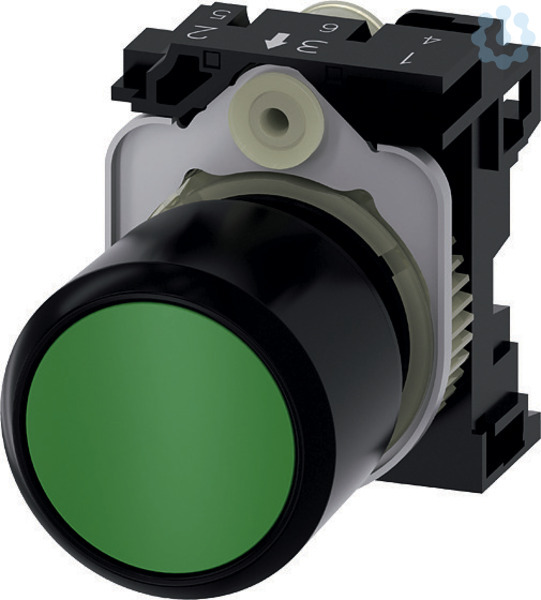 Drucktaster, kompakt, mit verlängertem Hub (12 mm), 22 mm, rund, Kunststoff, grün, Druckknopf, flach, tastend, mit Halter Drucktaster SIRIUS ACT zur Schaltung und Steuerung elektrischer Verbraucher.Unter dem Markennamen SIRIUS ACT bietet Siemens ein einzigartiges Portfolio an Befehls- und Meldegeräten mit weltweiten Produkt-Zulassungen in drei modernen Designreihen aus robustem Echtmetall und hochwertigem Kunststoff.Das innovative Aufschnappkonzept vereinfacht die Montage so weit, dass dafür nur eine Hand und kein Spezialwerkzeug erforderlich ist. Als Montagebohrungen genügen nutfreie Löcher, da bereits ein 100%iger Verdrehschutz integriert ist.Dank der durchgängig hohen Schutzart sind die robusten Geräte industrietauglich und für den Außeneinsatz geeignet. Sogar die Reinigung mit Hochdruckstrahl ist möglich. Weder Staub, Öle noch aggressive Laugen können den zuverlässigen Betrieb stören.Neben der Standardverdrahtung können die meisten Geräte auch über PROFINET, AS-Interface oder IO-Link an die Steuerung angebunden werden. Damit reduzieren Sie Ihren Verdrahtungsaufwand, minimieren Fehlerquellen und gewinnen mehr Flexibilität.Komfortabel unterstützt der grafische Online-Konfigurator bei Auswahl und Bestellung von Einzelgeräten, Gehäusen und Beschriftungen. Umfangreiche Dokumentation (z.B. Handbuch, 3D-Daten, Anschlussdiagramm) ist verfügbar.Lieferbare Ausführungen: mehrere Farben, beleuchtet/unbeleuchtet, mit/ohne Beschriftung, verrastende/tastende Betätigung, verschiedene Druckknopf- und Frontringhöhen.Hinweis: Kompaktgerät mit mechanischer Schaltfunktion, kann nur mit Verlängerungsstößel (3SU1900-0KG10-0AA0) eingesetzt werden. Lieferung inklusive Halter.SIRIUS ACT - Performance in Action beim Befehlen und Melden. Einfach montiert, einfach stark, einfach perfekt.