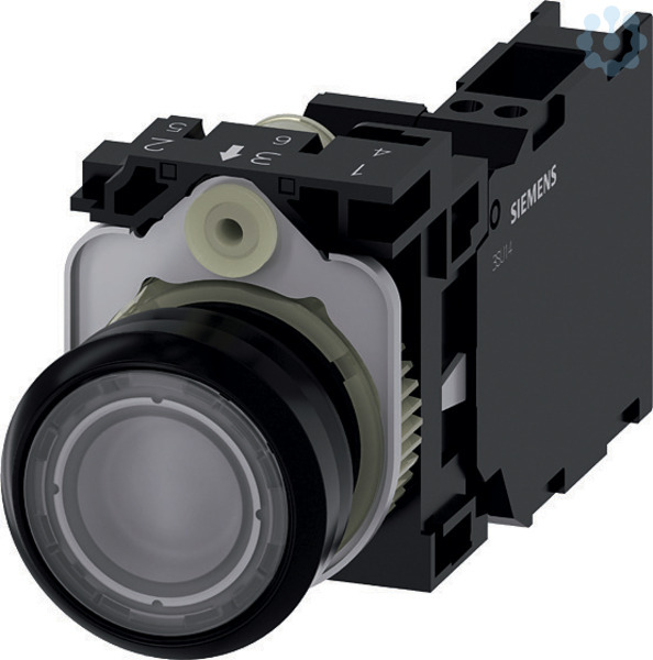 Leuchtdrucktaster, 22 mm, rund, Kunststoff, klar, Druckknopf, flach, tastend, mit Halter, 1S+1Ö, LED-Modul mit integrierter LED AC/DC 24V, Federzuganschluss Leuchtdrucktaster SIRIUS ACT zur Schaltung und Steuerung elektrischer Verbraucher.Unter dem Markennamen SIRIUS ACT bietet Siemens ein einzigartiges Portfolio an Befehls- und Meldegeräten mit weltweiten Produkt-Zulassungen in drei modernen Designreihen aus robustem Echtmetall und hochwertigem Kunststoff.Das innovative Aufschnappkonzept vereinfacht die Montage so weit, dass dafür nur eine Hand und kein Spezialwerkzeug erforderlich ist. Als Montagebohrungen genügen nutfreie Löcher, da bereits ein 100%igerVerdrehschutz integriert ist.Dank der durchgängig hohen Schutzart sind die robusten Geräte industrietauglich und für den Außeneinsatz geeignet. Sogar die Reinigung mit Hochdruckstrahl ist möglich. Weder Staub, Öle noch aggressive Laugen können den zuverlässigen Betrieb stören.Neben der Standardverdrahtung können die meisten Geräte auch über PROFINET, AS-Interface oder IO-Link an die Steuerung angebunden werden. Damit reduzieren Sie Ihren Verdrahtungsaufwand, minimieren Fehlerquellen und gewinnen mehr Flexibilität.Komfortabel unterstützt der grafische Online-Konfigurator bei Auswahl und Bestellung von Einzelgeräten, Gehäusen und Beschriftungen. Umfangreiche Dokumentation (z.B. Handbuch, 3D-Daten, Anschlussdiagramm) ist verfügbar.Lieferbare Ausführungen: mehrere Farben, beleuchtet/unbeleuchtet, mit/ohne Beschriftung, verrastende/tastende Betätigung, verschiedene Druckknopf- und Frontringhöhen.Hinweis: Komplettgerät, Lieferung inklusive Halter und Module.SIRIUS ACT - Performance in Action beim Befehlen und Melden. Einfach montiert, einfach stark, einfach perfekt.