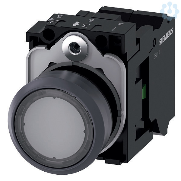 Leuchtdrucktaster, 22 mm, rund, Kunststoff mit Metallfrontring, klar, Druckknopf, flach, tastend, mit Halter, 1S, LED-Modul mit integrierter LED AC/DC 24V, Federzuganschluss Leuchtdrucktaster SIRIUS ACT zur Schaltung und Steuerung elektrischer Verbraucher.Unter dem Markennamen SIRIUS ACT bietet Siemens ein einzigartiges Portfolio an Befehls- und Meldegeräten mit weltweiten Produkt-Zulassungen in vier modernen Designreihen aus robustem Echtmetall und hochwertigem Kunststoff.Das innovative Aufschnappkonzept vereinfacht die Montage so weit, dass dafür nur eine Hand und kein Spezialwerkzeug erforderlich ist. Als Montagebohrungen genügen nutfreie Löcher, da bereits ein 100%iger Verdrehschutz integriert ist.Dank der durchgängig hohen Schutzart sind die robusten Geräte industrietauglich und für den Außeneinsatz geeignet. Sogar die Reinigung mit Hochdruckstrahl ist möglich. Weder Staub, Öle noch aggressive Laugen können den zuverlässigen Betrieb stören.Neben der Standardverdrahtung können die Geräte auch über PROFINET, AS-Interface oder IO-Link an die Steuerung angebunden werden. Damit reduzieren Sie Ihren Verdrahtungsaufwand, minimieren Fehlerquellen und gewinnen mehr Flexibilität.Komfortabel unterstützt der grafische Online-Konfigurator bei Auswahl und Bestellung von Einzelgeräten, Gehäusen und Beschriftungen. Umfangreiche Dokumentation (z.B. Handbuch, 3D-Daten, Anschlussdiagramm) ist verfügbar.Lieferbare Ausführungen: mehrere Farben, beleuchtet/unbeleuchtet, mit/ohne Beschriftung, verrastende/tastende Betätigung, verschiedene Druckknopf- und Frontringhöhen.Hinweis: Komplettgerät, Lieferung inklusive Halter und Module.SIRIUS ACT - Performance in Action beim Befehlen und Melden. Einfach montiert, einfach stark, einfach perfekt.