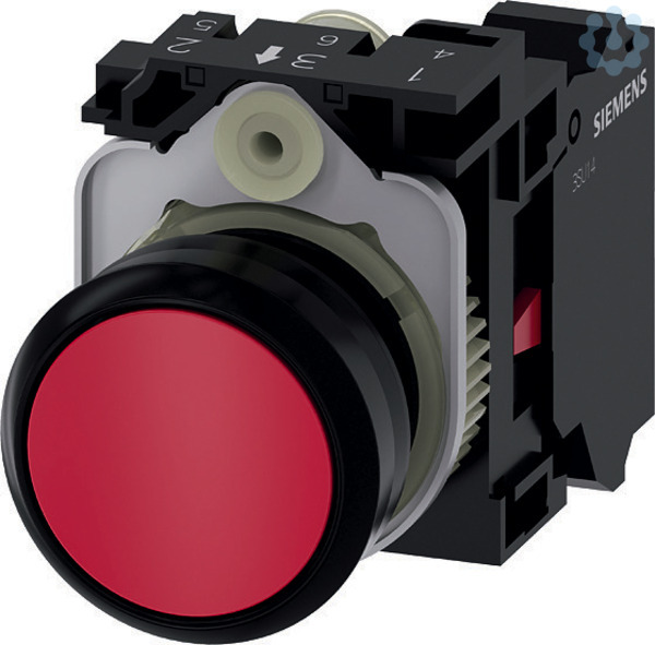 Drucktaster, 22 mm, rund, Kunststoff, rot, Druckknopf, flach, tastend, mit Halter 1Ö, Federzuganschluss Drucktaster SIRIUS ACT zur Schaltung und Steuerung elektrischer Verbraucher.Unter dem Markennamen SIRIUS ACT bietet Siemens ein einzigartiges Portfolio an Befehls- und Meldegeräten mit weltweiten Produkt-Zulassungen in drei modernen Designreihen aus robustem Echtmetall und hochwertigem Kunststoff.Das innovative Aufschnappkonzept vereinfacht die Montage so weit, dass dafür nur eine Hand und kein Spezialwerkzeug erforderlich ist. Als Montagebohrungen genügen nutfreie Löcher, da bereits ein 100%iger Verdrehschutz integriert ist.Dank der durchgängig hohen Schutzart sind die robusten Geräte industrietauglich und für den Außeneinsatz geeignet. Sogar die Reinigung mit Hochdruckstrahl ist möglich. Weder Staub, Öle noch aggressive Laugen können den zuverlässigen Betrieb stören.Neben der Standardverdrahtung können die meisten Geräte auch über PROFINET, AS-Interface oder IO-Link an die Steuerung angebunden werden. Damit reduzieren Sie Ihren Verdrahtungsaufwand, minimieren Fehlerquellen und gewinnen mehr Flexibilität.Komfortabel unterstützt der grafische Online-Konfigurator bei Auswahl und Bestellung von Einzelgeräten, Gehäusen und Beschriftungen. Umfangreiche Dokumentation (z.B. Handbuch, 3D-Daten, Anschlussdiagramm) ist verfügbar.Lieferbare Ausführungen: mehrere Farben, beleuchtet/unbeleuchtet, mit/ohne Beschriftung, verrastende/tastende Betätigung, verschiedene Druckknopf- und Frontringhöhen.Hinweis: Komplettgerät, Lieferung inklusive Halter und Module.SIRIUS ACT - Performance in Action beim Befehlen und Melden. Einfach montiert, einfach stark, einfach perfekt.