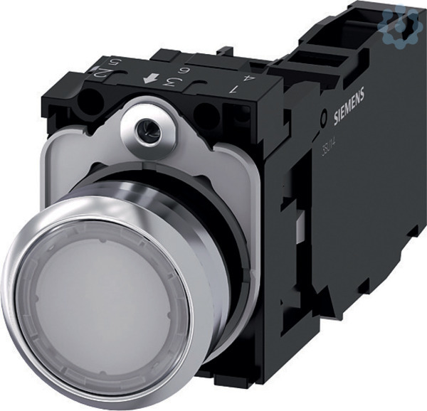 Leuchtdrucktaster, 22 mm, rund, Metall, hochglanz, weiß, Druckknopf, flach, tastend, mit Halter, 1S+1Ö, LED-Modul mit integrierter LED AC/DC 24V, Schraubanschluss Leuchtdrucktaster SIRIUS ACT zur Schaltung und Steuerung elektrischer Verbraucher.Unter dem Markennamen SIRIUS ACT bietet Siemens ein einzigartiges Portfolio an Befehls- und Meldegeräten mit weltweiten Produkt-Zulassungen in drei modernen Designreihen aus robustem Echtmetall und hochwertigem Kunststoff.Das innovative Aufschnappkonzept vereinfacht die Montage so weit, dass dafür nur eine Hand und kein Spezialwerkzeug erforderlich ist. Als Montagebohrungen genügen nutfreie Löcher, da bereits ein 100%igerVerdrehschutz integriert ist.Dank der durchgängig hohen Schutzart sind die robusten Geräte industrietauglich und für den Außeneinsatz geeignet. Sogar die Reinigung mit Hochdruckstrahl ist möglich. Weder Staub, Öle noch aggressive Laugen können den zuverlässigen Betrieb stören.Neben der Standardverdrahtung können die meisten Geräte auch über PROFINET, AS-Interface oder IO-Link an die Steuerung angebunden werden. Damit reduzieren Sie Ihren Verdrahtungsaufwand, minimieren Fehlerquellen und gewinnen mehr Flexibilität.Komfortabel unterstützt der grafische Online-Konfigurator bei Auswahl und Bestellung von Einzelgeräten, Gehäusen und Beschriftungen. Umfangreiche Dokumentation (z.B. Handbuch, 3D-Daten, Anschlussdiagramm) ist verfügbar.Lieferbare Ausführungen: mehrere Farben, beleuchtet/unbeleuchtet, mit/ohne Beschriftung, verrastende/tastende Betätigung, verschiedene Druckknopf- und Frontringhöhen.Hinweis: Komplettgerät, Lieferung inklusive Halter und Module.SIRIUS ACT - Performance in Action beim Befehlen und Melden. Einfach montiert, einfach stark, einfach perfekt.