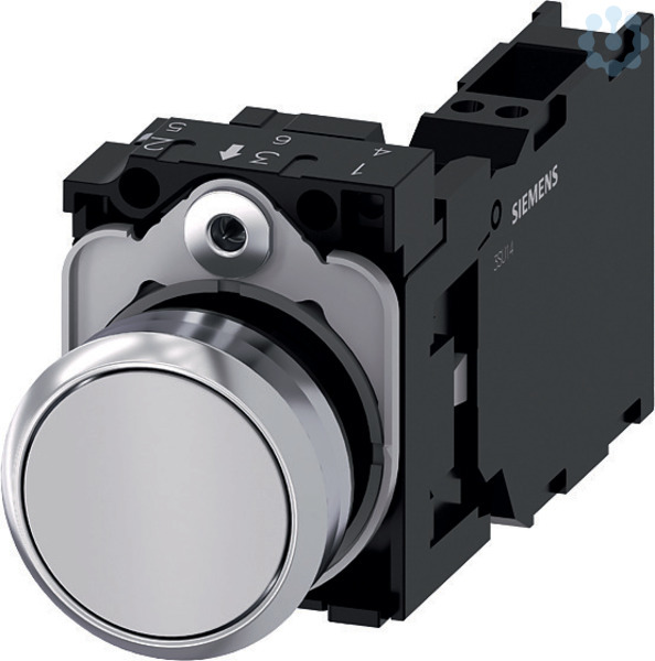 Drucktaster, 22 mm, rund, Metall, hochglanz, weiß, Druckknopf, flach, tastend, mit Halter, 1S+1Ö, Federzuganschluss Drucktaster SIRIUS ACT zur Schaltung und Steuerung elektrischer Verbraucher.Unter dem Markennamen SIRIUS ACT bietet Siemens ein einzigartiges Portfolio an Befehls- und Meldegeräten mit weltweiten Produkt-Zulassungen in drei modernen Designreihen aus robustem Echtmetall und hochwertigem Kunststoff.Das innovative Aufschnappkonzept vereinfacht die Montage so weit, dass dafür nur eine Hand und kein Spezialwerkzeug erforderlich ist. Als Montagebohrungen genügen nutfreie Löcher, da bereits ein 100%iger Verdrehschutz integriert ist.Dank der durchgängig hohen Schutzart sind die robusten Geräte industrietauglich und für den Außeneinsatz geeignet. Sogar die Reinigung mit Hochdruckstrahl ist möglich. Weder Staub, Öle noch aggressive Laugen können den zuverlässigen Betrieb stören.Neben der Standardverdrahtung können die meisten Geräte auch über PROFINET, AS-Interface oder IO-Link an die Steuerung angebunden werden. Damit reduzieren Sie Ihren Verdrahtungsaufwand, minimieren Fehlerquellen und gewinnen mehr Flexibilität.Komfortabel unterstützt der grafische Online-Konfigurator bei Auswahl und Bestellung von Einzelgeräten, Gehäusen und Beschriftungen. Umfangreiche Dokumentation (z.B. Handbuch, 3D-Daten, Anschlussdiagramm) ist verfügbar.Lieferbare Ausführungen: mehrere Farben, beleuchtet/unbeleuchtet, mit/ohne Beschriftung, verrastende/tastende Betätigung, verschiedene Druckknopf- und Frontringhöhen.Hinweis: Komplettgerät, Lieferung inklusive Halter und Module.SIRIUS ACT - Performance in Action beim Befehlen und Melden. Einfach montiert, einfach stark, einfach perfekt.