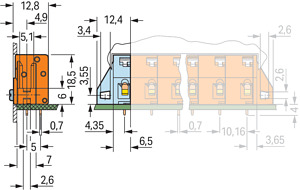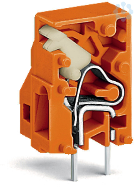 Anreihbare Leiterplattenklemme; Drücker; 2,5 mm²; Rastermaß 6,5 mm; 1-polig; CAGE CLAMP®; Befestigungflansch; 2,50 mm²; orange