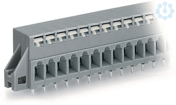 Leiterplattenklemme; Drücker; 2,5 mm²; Rastermaß 5 mm; 2-polig; CAGE CLAMP®; Befestigungflansch; 2,50 mm²; grau