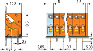 Durchf.-Klemmleiste 16pol. orange 0,08-2,5qmm RM5,08mm