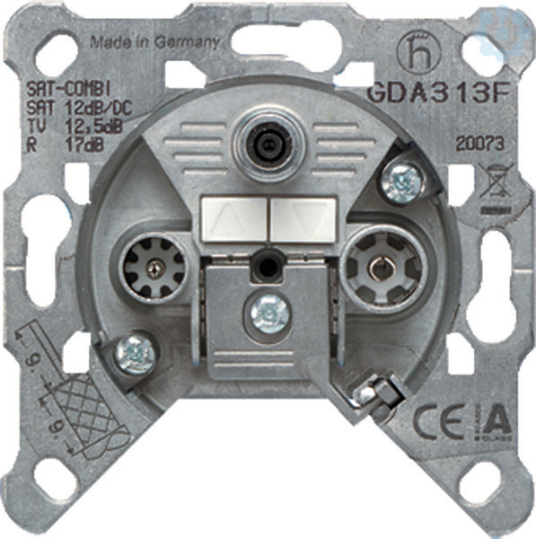 Sat-ZF-Dose mit rückkanaltauglichen, breitbandigen BK-/CATV-Auslässen (Verteiler-Filter-Kombination).