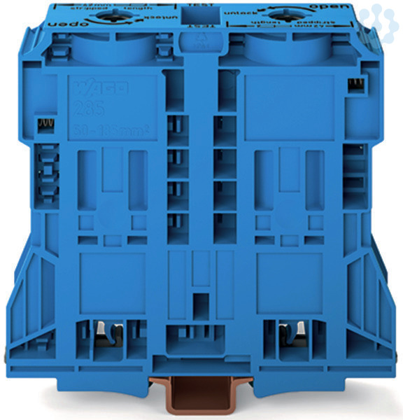 2-Leiter-Durchgangsklemme; 185 mm²; seitliche Beschriftungsaufnahmen; nur auf Tragschiene 35 x 15; POWER CAGE CLAMP; 185,00 mm²; blau
