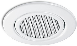 Deckeneinbau-Lautsprecher, DA 68 mm, weiß, rund. Ausgeführt in kompakter Bauform für werkzeuglose Schnellmontage zum Deckeneinbau. Nenn- / Musikbelastbarkeit: 3 / 4 W, Impedanz: 20 Ohm Es können bis zu 5 Lautsprecher an einen Kanal eines Hifi- Verstärkers parallel angeschlossen werden. Schalldruckpegel: 1 W / 1 m: 82 dB (bei Nennleistung 87 dB), Übertragungsbereich (-3 db): 200 - 16.000 Hz, Übertragungsbereich (-10 db): 150 - 20.000 Hz, Ausführung: Frontring (Stahl) und Lochblechabdeckung weiß (.07) oder chrom-metallisiert (.02 /.15), Nettogewicht: 0,14 kg Montage mit Einbaufedern. Anschluss durch 2-adrige Leitung mit Anschlussklemme. Material: Stahl Montageart: Einbaumontage, Montageort: Deckenmontage, Material: Stahl / Kunststoff, Schutzart raumseitig: nach DIN EN 60529: IP20, Verstellbarkeit: schwenkbar.