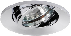 Einbaustrahler, ohne Fassung, chrom, rund. Ausgeführt in kompakter Bauform für werkzeuglose Schnellmontage zum Deckeneinbau. Ausführung: GX5,3, Montageart: Einbaumontage, Montageort: Deckenmontage, Material: Aluminiumguss, Schutzart raumseitig: nach DIN EN 60529: IP20, Schutzklasse: (EN 61140) III, Spannung: 12V, Leistung: 50 W, Anzahl der Leuchtmittel / Fassungen: 1 Stück, Verstellbarkeit: schwenkbar, ohne Betriebsgerät, Art der Dimmung: abhängig vom Betriebsgerät.