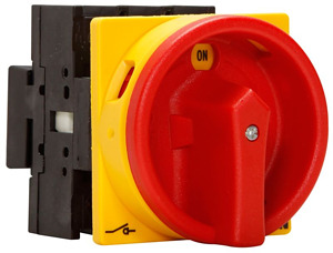 EIN-AUS-Schalter, Sortiment: EIN-AUS-Schalter, Typkenner: P1, mit schwarzem Knebel und Frontschild, Information zum Lieferumfang: Hilfsschalterkontakt oder Neutralleiter nachrüstbar., 3-polig, Schutzart: Front IP65, Bauform: Zentraleinbau, Bemessungsbetriebsleistung AC-23A, 50 - 60 Hz 400 V: P = 15 kW, Bemessungsdauerstrom: Iu = 32 A, Normen und Bestimmungen: IEC/EN 60947, VDE 0660, IEC/EN 60204, CSA, UL, Lasttrennschalter nach IEC/EN 60947-3