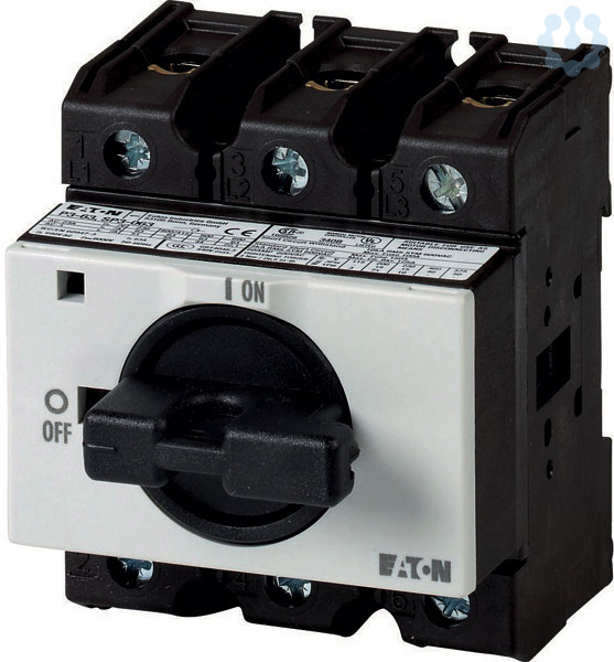 EIN-AUS-Schalter, Sortiment: EIN-AUS-Schalter, Typkenner: P3, mit schwarzem Knebel und Frontschild, Information zum Lieferumfang: Hilfsschalterkontakt oder Neutralleiter nachrüstbar., 3-polig, Schutzart: Front IP30, Bauform: Verteilereinbau, Bemessungsbetriebsleistung AC-23A, 50 - 60 Hz 400 V: P = 55 kW, Bemessungsdauerstrom: Iu = 100 A, Normen und Bestimmungen: IEC/EN 60947, VDE 0660, IEC/EN 60204, CSA, UL, Lasttrennschalter nach IEC/EN 60947-3