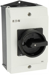 Hauptschalter/Lasttrennschalter Ein-Aus nach IEC/EN 60947-3, 690V/63A, Schutzart Front IP65, Griff schwarz mit Sperrkranz schwarz abschliessbar mit 3 Vorhängeschlössern, Die Lasttrennschalter P3 sind sehr kompakt und robust gebaut. Der Handantrieb wirkt in direkter Verbindung auf die Kontakte. Die Kontakte werden beim Ausschalten zwangsläufig geöffnet. Bauformen allgemein: Isolierstoff-Aufbaugehäuse, Einbau, Zwischenbau, IVS-Verteilereinbau