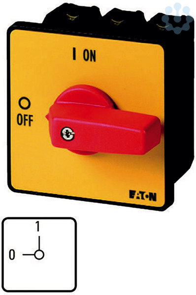 EIN-AUS-Schalter, Sortiment: EIN-AUS-Schalter, Typkenner: P3, STOPP-Funktion: NOT-AUS-Funktion, mit rotem Knebel und gelbem Frontschild, Information zum Lieferumfang: Hilfsschalterkontakt oder Neutralleiter nachrüstbar., 3-polig, Schutzart: Front IP65, Bauform: Einbau, Bemessungsbetriebsleistung AC-23A, 50 - 60 Hz 400 V: P = 30 kW, Bemessungsdauerstrom: Iu = 63 A, Normen und Bestimmungen: IEC/EN 60947, VDE 0660, IEC/EN 60204, CSA, UL, Lasttrennschalter nach IEC/EN 60947-3