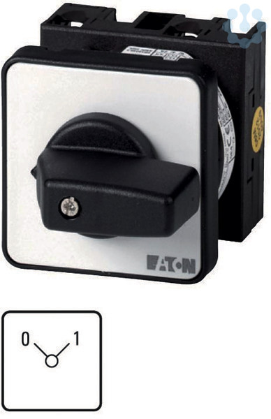 EIN-AUS-Schalter, Sortiment: Steuerschalter, Normen und Bestimmungen: IEC/EN 60947, VDE 0660, IEC/EN 60204, CSA, UL, Lasttrennschalter nach IEC/EN 60947-3, Typkenner: T0, mit schwarzem Knebel und Frontschild, Kontakte: 2, Schutzart: Front IP65, Bauform: Einbau, Schaltwinkel: 90 °, Schaltverhalten: rastend, 1 Baueinheit(en), Bemessungsdauerstrom: Iu= 20 A, Frontschild: 0-1