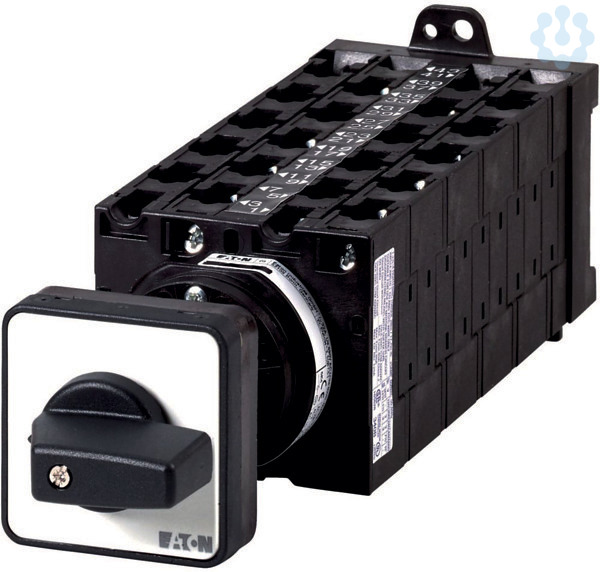 EIN-AUS-Schalter, Sortiment: EIN-AUS-Schalter, Typkenner: T3, mit schwarzem Knebel und Frontschild, 22-polig, Schutzart: Front IP65, Bauform: Zwischenbau, Schaltwinkel: 90 °, Schaltverhalten: rastend, Frontschild: 0-1, Bemessungsbetriebsleistung AC-23A, 50 - 60 Hz 400 V: P = 15 kW, Bemessungsdauerstrom: Iu = 32 A, 11 Baueinheit(en), Normen und Bestimmungen: IEC/EN 60947, VDE 0660, IEC/EN 60204, CSA, UL, Lasttrennschalter nach IEC/EN 60947-3