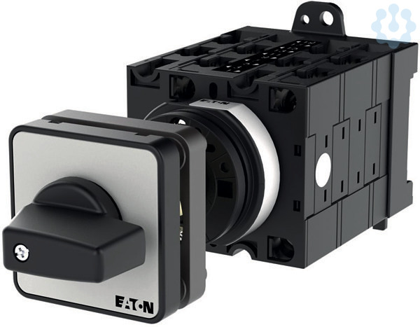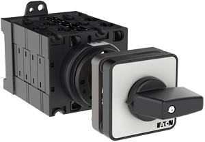 EIN-AUS-Schalter, Sortiment: EIN-AUS-Schalter, Typkenner: T3, mit schwarzem Knebel und Frontschild, 10-polig, Schutzart: Front IP65, Bauform: Zwischenbau, Schaltwinkel: 90 °, Schaltverhalten: rastend, Frontschild: 0-1, Bemessungsbetriebsleistung AC-23A, 50 - 60 Hz 400 V: P = 15 kW, Bemessungsdauerstrom: Iu = 32 A, 5 Baueinheit(en), Normen und Bestimmungen: IEC/EN 60947, VDE 0660, IEC/EN 60204, CSA, UL, Lasttrennschalter nach IEC/EN 60947-3