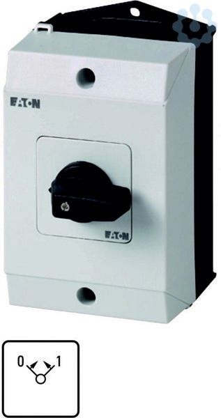 EIN-/AUS-Taste, Sortiment: Steuerschalter, Normen und Bestimmungen: IEC/EN 60947, VDE 0660, IEC/EN 60204, Lasttrennschalter nach IEC/EN 60947-3, Typkenner: T0, mit schwarzem Knebel und Frontschild, Kontakte: 2, Tastfunktion: Tastfunktion in Stellung 0 und 1, Schutzart: IP65, Bauform: Aufbau, Schaltwinkel: 45 °, Schaltverhalten: tastend, mit 0-Stellung, mit 2-seitigem Rückzug, 1 Baueinheit(en), Bemessungsdauerstrom: Iu= 20 A, Frontschild: 0 >< 1