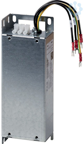 Funkentstörfilter, Beschreibung: dreiphasig, ableitstromarm, Netzspannung (50/60Hz): ULN= max. 520 + 10% V, Bemessungsbetriebsstrom: Ie= 11 A, verwendbar für: DC1, DA1, Schutzart: IP00, IP20 im angeschlossenen Zustand, Anschlussart: Anschlussklemme, PE-Bolzen, konfektionierte Leitungen, Gewicht: m 1,5 kg, Hinweise: Unterbaufilter, Nebenbaufilter, Normen und Bestimmungen: EN 50178, IEC 61800-3, EN 61800-3 inkl. A11
