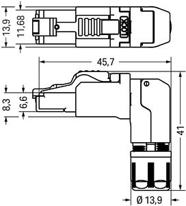 ETHERNET-Stecker; RJ-45; Cat. 6A; gewinkelt; Code T568A; AWG 24; Zugentlastung