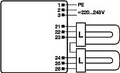 EVG für KLL. Produkteigenschaften: Versorgungsspannung: 220…240 V. Netzspannung: 198…264 V. Netzfrequenz: 0 Hz | 50 Hz | 60 Hz. Lampenstart mit optimaler Wendelvorheizung. Energie-Effizienz-Index EEI: A2. Automatische Sicherheitsabschaltung bei Lampendefekt und am Lampenlebensende (EoL T.2). Lampenbetrieb: nach EN 60929. Sicherheit: nach EN 61347-2-3. Produktvorteile: Lange Lampenlebensdauer. Hohe Schaltfestigkeit. Automatische Wiedereinschaltung nach Lampenwechsel. Perfekter Lampenwarmstart für Anwendungen mit Bewegungsmelder. Unabhängige Installationen durch optionale Kabelklammer für K2- und K3-Gehäuse. VDE/VDE EMV-zertifiziertes System. Anwendungsgebiete: Notbeleuchtungsanlagen gem. EN 50172 / DIN VDE 0108-100. Öffentliche Gebäude. Sporthallen und Fabriken. Geeignet für Leuchten der Schutzklasse I.