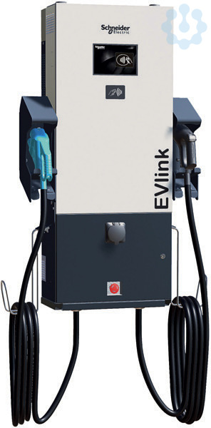 EVlink Wallbox DC 24 kW mit Kabel CHAdeMO & CCS2 & Steckdose Typ 2. Wand-Ladestation - zur DC-Ladung von Elektrofahrzeugen in Mode 4 sowie AC-Ladung von Elektrofahrzeugen in Mode 3. 1 Ladepunkt, Kabel 3,5 m & Steckdose, Ladeleistung: 24 kW (DC), Typ CHAdeMO & CCS2, Ladeleistung: 22 kW (AC), Typ 1 x 2. Mit 7-Zoll farbigem Touch Display zur Bedienung inkl. verschiedener Sprachen. OCPP 1.6 Kommunikation zu einem Backend-System über LAN/TCP/IP oder 3G Modem. Für private und halböffentliche Anwendungen. Für den innen- oder Außenbereich (IP54). Zugrifsskontrolle mit RFID. Abmessungen (H x L x B): 1225 x 507 x 250 mm (Wandmontage), 1835 x 536 x 336 mm (Montage auf Stele EVP1DB2LG). Gewicht: 85 kg (Wandmontage), 138 kg (Montage auf Stele). Eingang: 380-480VAC, 50-60Hz, In: 37A. Ausgang: 150-530VDC, In: 1,5-65A, Pmax: 24kW. CE, IEC-EN 61851-1 / 61851-22 / 61851-23, RoHS, REACH-SVHC, EN 61000-6-2, EN 61000-6-4/A1, EN 301489 v2.2.0, EN 301489-17 V3.2.0 of 2017, EN 61000-3-11, EN 61000-3-12, IEC 61557-1 & IEC 61557-8.