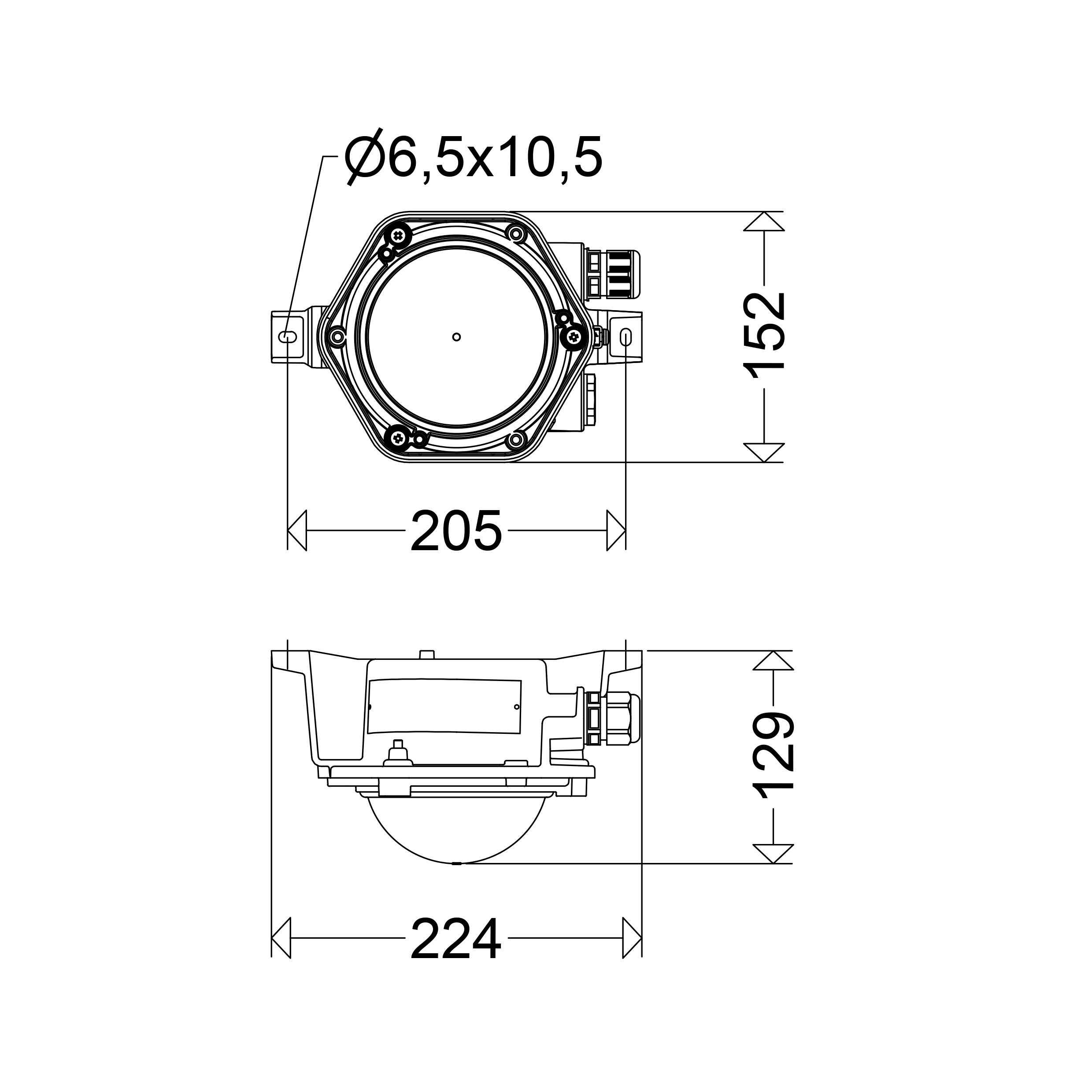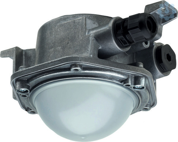 EX-LED-Wand- und Deckenleuchte, ExGLOBE, EX-Zone 1/21/2/22, 11 W, 600 lm, SKI, IP66, rotationssymmetrisch-strahlend, 6500 K, Ra≥ 0, Ta -25 °C/+40 °C, L70>100000 h (@ Ta max), Wanne PC satiniert, Verschluss Stahl verzinkt, Gehäuse Alu-Druckguss, EAN/GTIN:4041254347318.Explosionsgeschützte LED-Wand- und Deckenleuchte ExGLOBE für Zone 1/21. Gehäuse aus Aluminiumdruckguss mit angegossenen Befestigungslaschen, unlackiert, Elektroblock aus Aluminiumdruckguss mit LED-Modul und integriertem EVG. Satinierte Abdeckung aus Polycarbonat.
