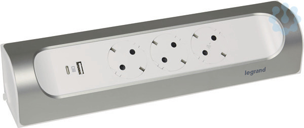 Ecksteckdosenleiste 3x Steckdose, USB A+C, ohne Kabel Farbe: Ultraweiß/Aluminium