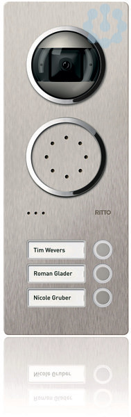 Edelstahl-Türstation mit vorinstallierter Color-Videokamera und Einbaulautsprecher. Ausführung wie Edelstahl-Türstation Audio 3WE jedoch mit -Mechanisch verstellbarer Color-Kamera. Gesamterfassungsbereich 150 Grad horizontal. Gesamterfassungsbereich 90 Grad vertikal. Abmessungen Frontplatte 154x415x2.5 mm (BxHxT). Abmessungen UP-Kasten 130x391x52 mm (BxHxT). Lieferumfang Unterputzkasten, Montagematerial Video, Edelstahl.