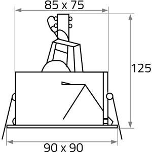 schwenkbar, ohne Sprengring für Durchm. 50 mm Leuchtmittel Deckenausschnitt 85x75mm Innen- und Außenanwendung Auch für den Einbau in Betondecken und anderen thermisch schwierigen Einbausituationen sowie den Einsatz in Feuchträumen geeignet. V2A-Edelstahl-Einbaustrahler Einfache Wechseltechnik mit Bajonettverschluss Schwenkbar, blendfrei durch tiefliegendes Leuchtmittel exklusive Leuchtmittel Aussenmaße 90x90mm exklusive Niedervolt Fassung Art.-Nr.: 55004 (SKIII) exklusive Hochvolt Fassung+Zugentlastung Art.-Nr.: 54995 (SKII)