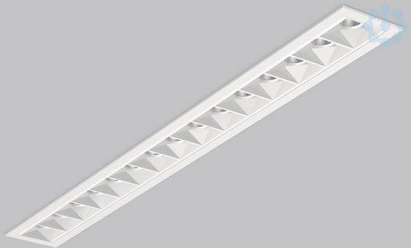 Minimalistische Deckeneinbauleuchte für ästhetisch anspruchsvolle Beleuchtung. Gehäuse Metall pulverbeschichtet. Perfektes Thermomanagement mittels Kühlkörper aus Aluminium. LED-Lichteinheit mit MRS-Technologie: Mini-Reflektor-System aus metallisiertem Thermoplast mit prismenförmigen weißen Entblendungsrahmen für angenehm blendfreies Licht (UGR < 10). Lichtverteilung breitstrahlend. Deckenbefestigung mit Federsystem. Inklusive Betriebsgerät extern über Steckverbindung, Verbindungsleitung 450 mm.