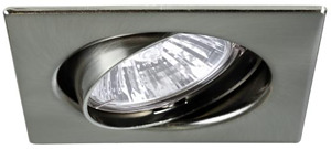 Einbaustrahler, GX5,3, nickel matt, quadratisch. Ausgeführt in kompakter Bauform für werkzeuglose Schnellmontage zum Deckeneinbau. Ausführung: GX5,3, Montageart: Einbaumontage, Montageort: Deckenmontage, Material: Stahl, Schutzart raumseitig: nach DIN EN 60529: IP20, Schutzklasse: (EN 61140) III, Spannung: 12V, Leistung: 50 W, Anzahl der Leuchtmittel / Fassungen: 1 Stück, Verstellbarkeit: schwenkbar, ohne Betriebsgerät, Art der Dimmung: abhängig vom Betriebsgerät.