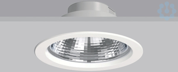Rundes Einbau-Downlight. Gehäuse UV-beständiger Kunststoff (Polycarbonat). Abdeckring Aluminium-Druckguss pulverbeschichtet. Aluminium-Facettenreflektor hochglanzeloxiert für brillante Ausleuchtung. Satinierte LED-Abdeckung zur Reduzierung der Direktblendung. Werkzeugloser Einbau durch Federbefestigung. Betriebsgerät in separater Gerätebox mit Verbindungsleitung. Für Durchgangsverdrahtung geeignet.