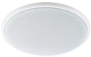 Deckeneinbau-Lautsprecher, DA 180 mm, weiß, rund. Ausgeführt in kompakter Bauform für werkzeuglose Schnellmontage zum Deckeneinbau. Nenn- / Musikbelastbarkeit: 40 / 50 W, Impedanz: 8 Ohm, Schalldruckpegel: 1 W / 1 m: 90 dB (bei Nennleistung 98 dB), Übertragungsbereich (-3 db): 100 - 20.000 Hz, Übertragungsbereich (-10 db): 60 - 23.000 Hz, Ausführung: Front- und Montagering aus Kunststoff mit Lochblechabdeckung in weiß, Nettogewicht: 1,0 kg Montage in Decken mit 1-20 mm Materialstärke. Anschluß durch 2-adrige Leitung mit Anschlussklemme. Feuchtigkeitsimprägnierte Membran: Eingeschränkter Schutz vor Feuchtigkeit (nicht für den dauerhaften Betrieb im Außenbereich geeignet). Montageart: Einbaumontage, Montageort: Deckenmontage, Material: Stahl / Kunststoff, Schutzart raumseitig: nach DIN EN 60529: IP20, Leistung: 50W.