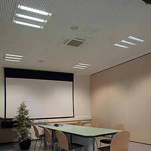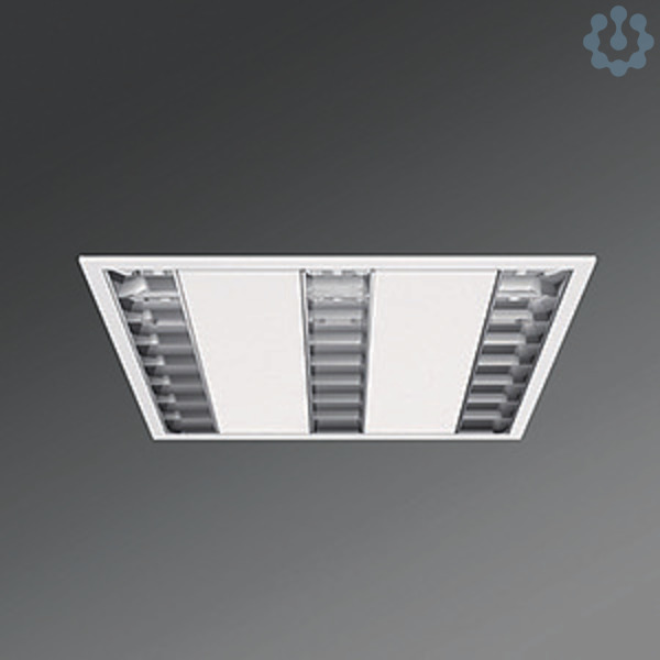 Stahlblechgehäuse geeignet für Decken mit sichtbaren T-Schienen, verdeckt symmetrischen Schienenkonstruktionen und ausgeschnittene Decken, Lichtverteilung direkt strahlend mittels reflexionsverstärktem Aluminium-Parabolraster seidenmatt eloxiert, für Bildschirmarbeitsplätze, 65° < 1000 cd/qm rundumentblendet nach aktueller Norm DIN-EN 12464-1, selbstrastend, beidseitig abklappbar, Elektrischer Anschluss und Anschluss der Steuerleitung über 5-polige Anschlussklemme in Steckkontakt-Technik.