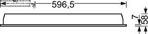 Stahlblechgehäuse geeignet für Decken mit sichtbaren T-Schienen, verdeckt symmetrischen Schienenkonstruktionen und ausgeschnittene Decken, Lichtverteilung direkt strahlend mittels reflexionsverstärktem Aluminium-Parabolraster seidenmatt eloxiert, für Bildschirmarbeitsplätze, 65° < 1000 cd/qm rundumentblendet nach aktueller Norm DIN-EN 12464-1, selbstrastend, beidseitig abklappbar, Elektrischer Anschluss und Anschluss der Steuerleitung über 5-polige Anschlussklemme in Steckkontakt-Technik.