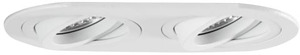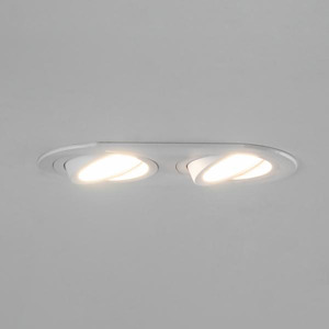 Einbaugehäuse, oval, bündig, 2-fach, mit Modulhalterungen bündig, schwenkbar, ohne LED-Module, strukturweiß, rund. Ausgeführt in kompakter Bauform für werkzeuglose Schnellmontage zum Deckeneinbau. Alle Brumberg MR16-LED-Module sind für die Einbaueinheit M1 bis zur maximal angegebenen Leistung einsetzbar. Die Einbautiefe der Leuchte richtet sich nach den jeweils verwendeten LED-Modulen. Die LED-Module sind im Lieferumfang der Einbaueinheit nicht enthalten. Ausführung: ohne Fassung, Montageart: Einbaumontage, Montageort: Deckenmontage, Material: Aluminium, Schutzart raumseitig: nach DIN EN 60529: IP20, Schutzklasse: (EN 61140) III, Leistung: 14 W, Anzahl der Leuchtmittel / Fassungen: 2 Stück, Verstellbarkeit: schwenkbar, ohne Betriebsgerät, Art der Dimmung: Abhängig vom Betriebsgerät.