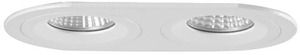 Einbaugehäuse, oval, bündig, 2-fach, mit Modulhalterungen bündig, starr, IP44, ohne LED-Module, strukturweiß, rund. Ausgeführt in kompakter Bauform für werkzeuglose Schnellmontage zum Deckeneinbau. Alle Brumberg MR16-LED-Module sind für die Einbaueinheit M1 bis zur maximal angegebenen Leistung einsetzbar. Die Einbautiefe der Leuchte richtet sich nach den jeweils verwendeten LED-Modulen. Die LED-Module sind im Lieferumfang der Einbaueinheit nicht enthalten. Ausführung: ohne Fassung, Montageart: Einbaumontage, Montageort: Deckenmontage, Material: Aluminium, Schutzart raumseitig: nach DIN EN 60529: IP44, Schutzklasse: (EN 61140) III, Leistung: 14 W, Anzahl der Leuchtmittel / Fassungen: 2 Stück, Verstellbarkeit: nicht verstellbar, ohne Betriebsgerät, Art der Dimmung: Abhängig vom Betriebsgerät.