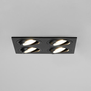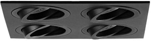 Einbaugehäuse, quadratisch, bündig, 4-fach, mit Modulhalterungen bündig, schwenkbar, ohne LED-Module, strukturschwarz, quadratisch. Ausgeführt in kompakter Bauform für werkzeuglose Schnellmontage zum Deckeneinbau. Alle Brumberg MR16-LED-Module sind für die Einbaueinheit M1 bis zur maximal angegebenen Leistung einsetzbar. Die Einbautiefe der Leuchte richtet sich nach den jeweils verwendeten LED-Modulen. Die LED-Module sind im Lieferumfang der Einbaueinheit nicht enthalten. Ausführung: ohne Fassung, Montageart: Einbaumontage, Montageort: Deckenmontage, Material: Aluminium, Schutzart raumseitig: nach DIN EN 60529: IP20, Schutzklasse: (EN 61140) III, Leistung: 14 W, Anzahl der Leuchtmittel / Fassungen: 4 Stück, Verstellbarkeit: schwenkbar, ohne Betriebsgerät, Art der Dimmung: Abhängig vom Betriebsgerät.