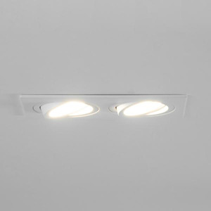 Einbaugehäuse, rechteckig, bündig, 2-fach, mit Modulhalterungen bündig, schwenkbar, ohne LED-Module, strukturweiß, quadratisch. Ausgeführt in kompakter Bauform für werkzeuglose Schnellmontage zum Deckeneinbau. Alle Brumberg MR16-LED-Module sind für die Einbaueinheit M1 bis zur maximal angegebenen Leistung einsetzbar. Die Einbautiefe der Leuchte richtet sich nach den jeweils verwendeten LED-Modulen. Die LED-Module sind im Lieferumfang der Einbaueinheit nicht enthalten. Ausführung: ohne Fassung, Montageart: Einbaumontage, Montageort: Deckenmontage, Material: Aluminium, Schutzart raumseitig: nach DIN EN 60529: IP20, Schutzklasse: (EN 61140) III, Leistung: 14 W, Anzahl der Leuchtmittel / Fassungen: 2 Stück, Verstellbarkeit: schwenkbar, ohne Betriebsgerät, Art der Dimmung: Abhängig vom Betriebsgerät.