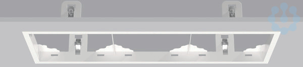 Einbaurahmen, 3-lampig. Einbaurahmen aus Stahlblech, pulverbeschichtet. Werkzeugloser Einbau durch Federbefestigung.
