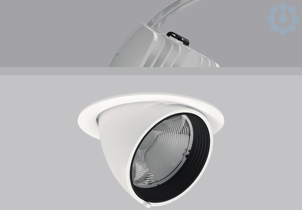 Einbaustrahler Gehäuse Aluminium-Druckguss pulverbeschichtet. 356° dreh- und 90° ausschwenkbar. Schwarzer Kunststoffring mit zurückgesetzter LED zur seitlichen Entblendung. Werkzeuglos wechselbare Optikbaugruppe mit Linse aus Kunststoff (Polycarbonat) für beste Homogenität des Lichtkegels. Werkzeugloser Einbau durch Federbefestigung. Inklusive Betriebsgerät extern über Steckverbindung, Verbindungsleitung 600 mm. Betriebsgerät mit besten Eigenschaften bzgl. Flickerfreiheit und Stroboskopeffekt. Durchgangsverdrahtungsbox (5-polig) als Zubehör erhältlich. Werkzeuglos montierbares Zubehör: Wechseloptiken, Wabenraster, Abdeckscheiben klar und mattiert, Kunststoffring weiß zum Wechseln.