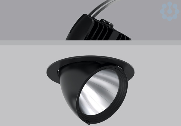 Einbaustrahler Gehäuse Aluminium-Druckguss pulverbeschichtet. 356° dreh- und 90° ausschwenkbar. Schwarzer Kunststoffring mit zurückgesetzter LED zur seitlichen Entblendung. Werkzeuglos wechselbare Optikbaugruppe mit Reflektor aus MIRO-Silver mit 98% Lichtgesamtreflexion für hervorragende Effizienz. Werkzeugloser Einbau durch Federbefestigung. Inklusive Betriebsgerät extern über Steckverbindung, Verbindungsleitung 600 mm. Betriebsgerät mit besten Eigenschaften bzgl. Flickerfreiheit und Stroboskopeffekt. Durchgangsverdrahtungsbox (5-polig) als Zubehör erhältlich. Werkzeuglos montierbares Zubehör: Wechseloptiken, Wabenraster, Abdeckscheiben klar und mattiert, Kunststoffring weiß zum Wechseln.