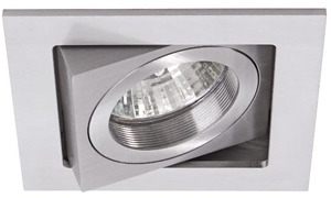 Einbaustrahler, GU10, alu matt, quadratisch. Ausgeführt in kompakter Bauform für werkzeuglose Schnellmontage zum Deckeneinbau. Inkl. Bügel mit GU10-Fasung zur normgerechten Zugentlastung. Ausführung: GU10, Montageart: Einbaumontage, Montageort: Deckenmontage, Material: Aluminium, Schutzart raumseitig: nach DIN EN 60529: IP20, Schutzklasse: (EN 61140) II, Spannung: 230V AC 50Hz, Leistung: 50 W, Anzahl der Leuchtmittel / Fassungen: 1 Stück, Farbtemperatur: K, Verstellbarkeit: schwenkbar, ohne Betriebsgerät, Art der Dimmung: sonstige.