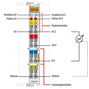 Eingangsklemme 0-10V DC 2Kanal analog 60Hz 16Bit lichtgrau