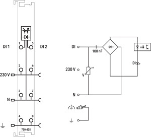 Eingangsklemme AC230V CC DI2 2/4-L. 10ms positivschaltend