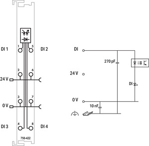 Eingangsklemme DC24V CC 4DI 2/3-L. Impulsverl. 10ms p-sch.